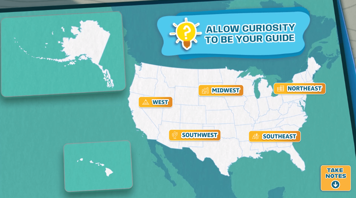 Ready to train the next generation of changemakers, Excursions in the United States presents a beautifully crafted immersive map. This map highlights different environmental challenges across the USA and explores possible solutions.